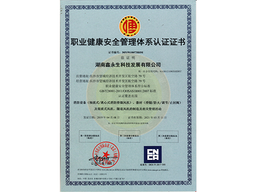 • 職業(yè)健康安全認(rèn)證體系證書